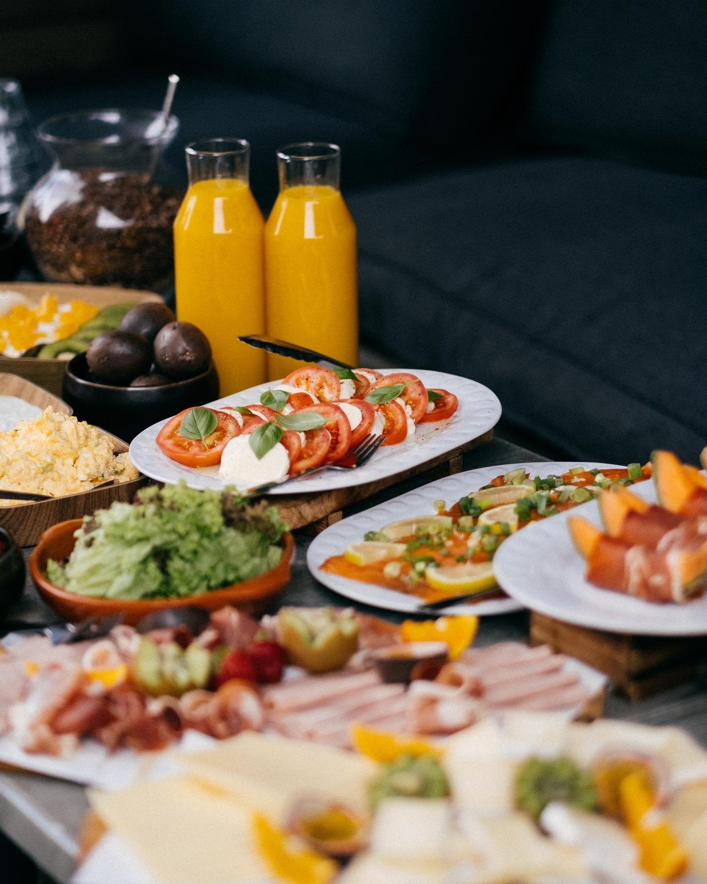 Bagel - vegan burger - sla - tomaat - rode ui - vegan sriracha + potato wedges & verse salade |